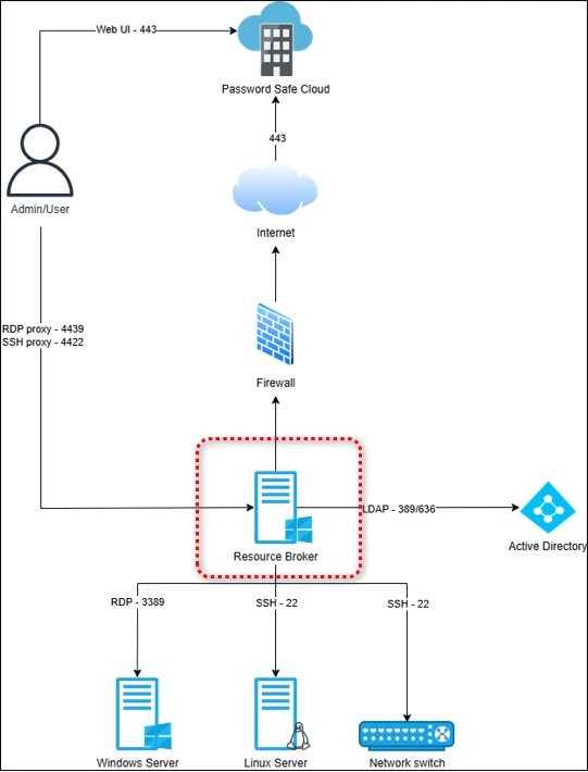 Please correct me if I am wrong. Based on the architecture diagram (refer to the part highlighted in red), does this mean that the Resource Broker server requires an RDS CAL license for users to start a proxy session through the resource broker server (on port 4489 or port 4422) to the managed system like windows server, linux server and network devices?