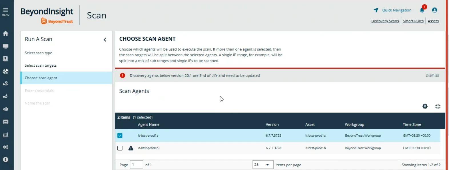 “discovery agents below version 20.1 are end of life, not supported for new scans and need to be updated”