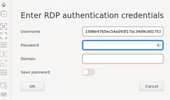 Instead, Remmina asks users to re-enter their Password Safe credentials (the same ones they already used to log in to PWS) before the RDP session actually starts.