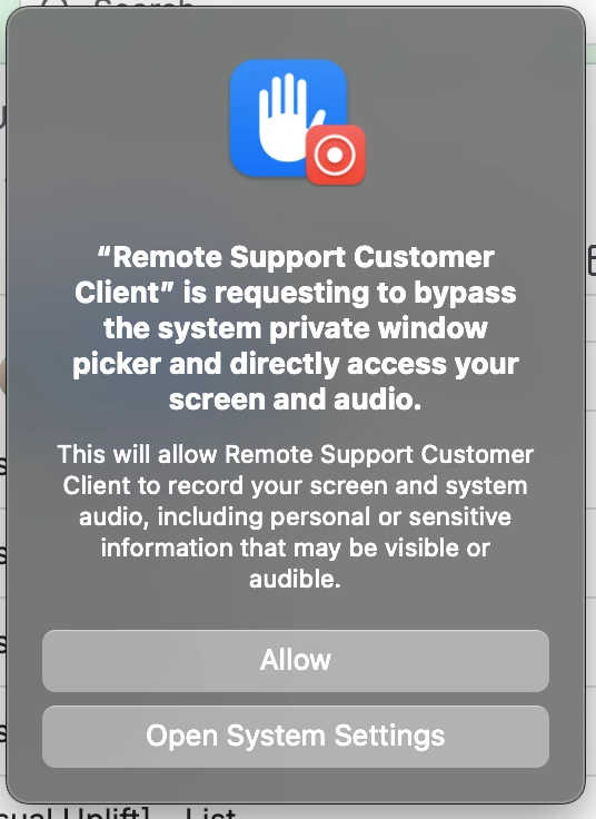 RS 25.2.4/MAC Jump Client : Question about System Settings Popup