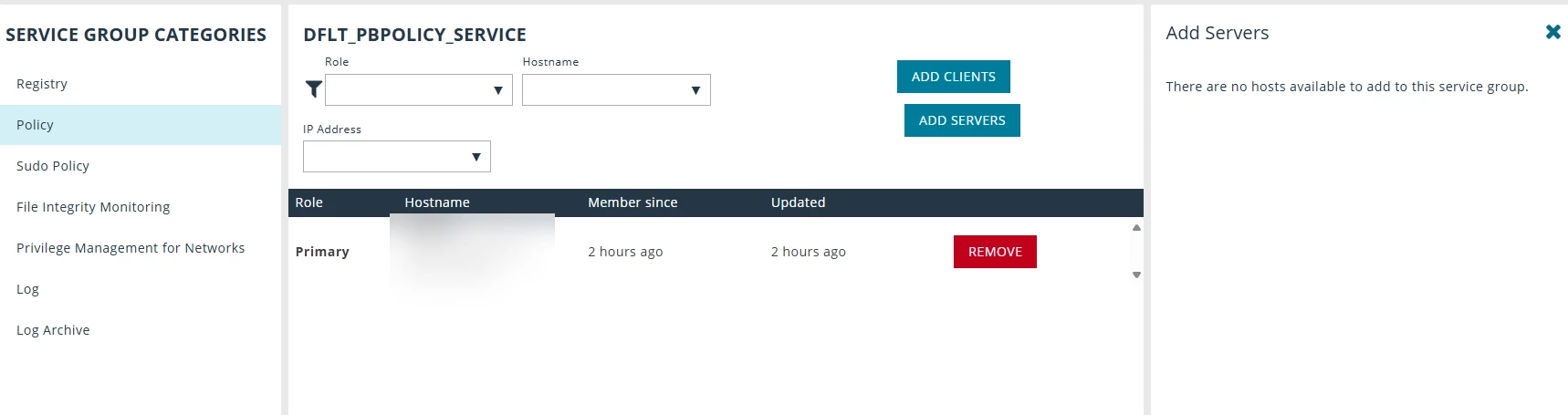 When I try to add servers or clients to the service groups. I don't find the other host.