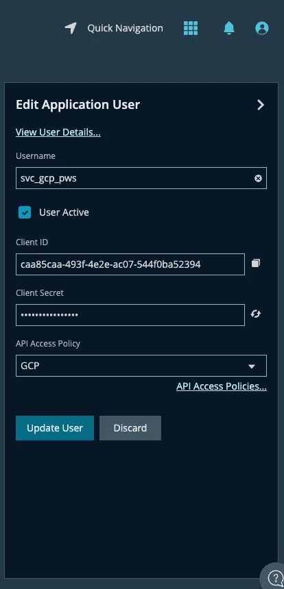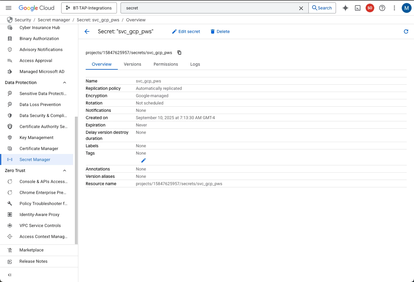 We need to create a secret in Google Secret Manager that contains the client secret for the Password Safe application user.