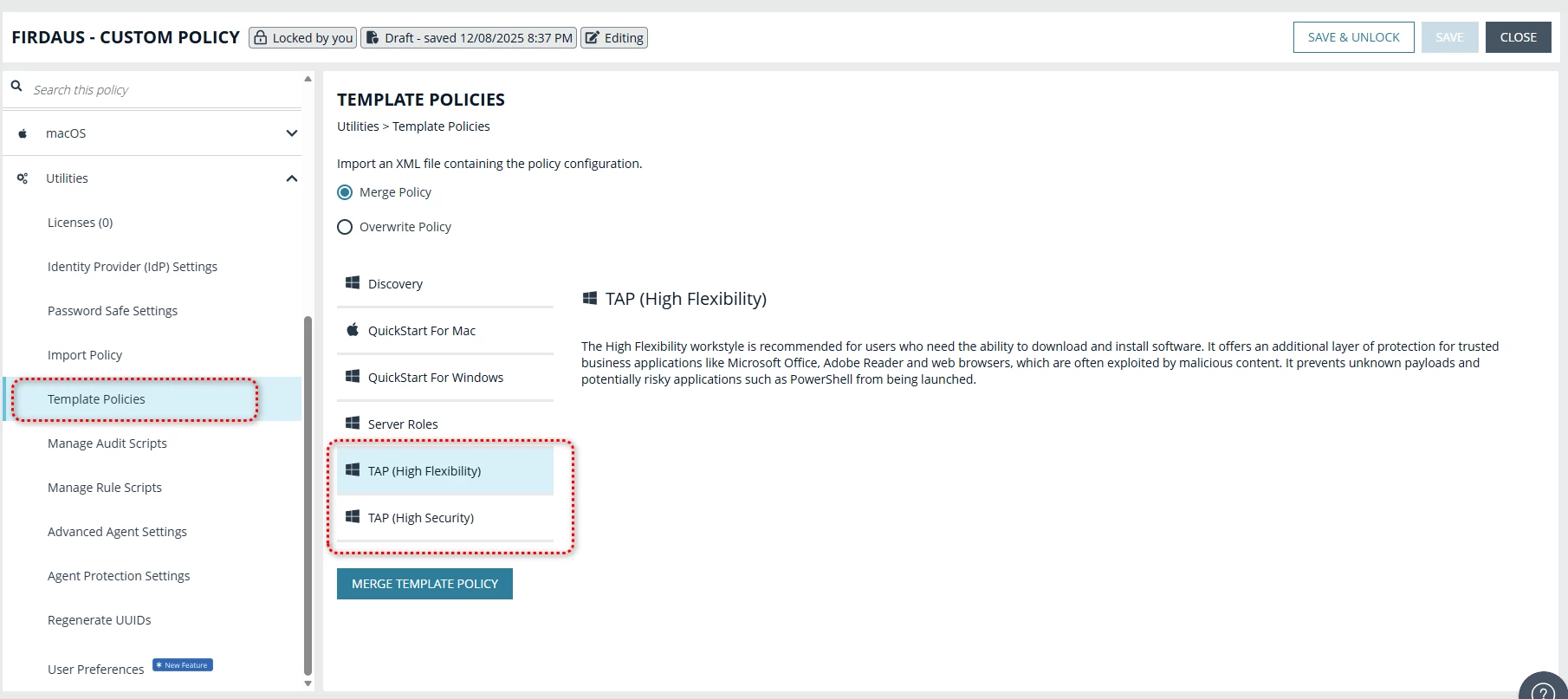 What is the difference between TAP configured under a Workstyle created in Enhanced Security and the TAP policy templates found under Utilities > Template Policies? I could not find any clear explanation in the documentation, or I may have missed it.